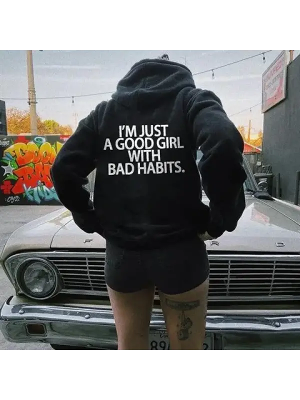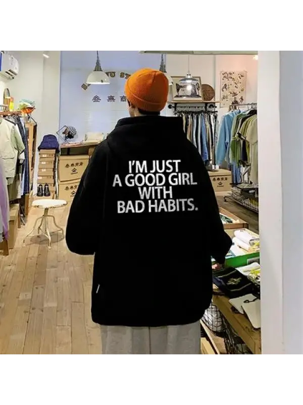 I'm Just A Good Girl With Bad Habits Baskılı Unisex Oversize Hoodie