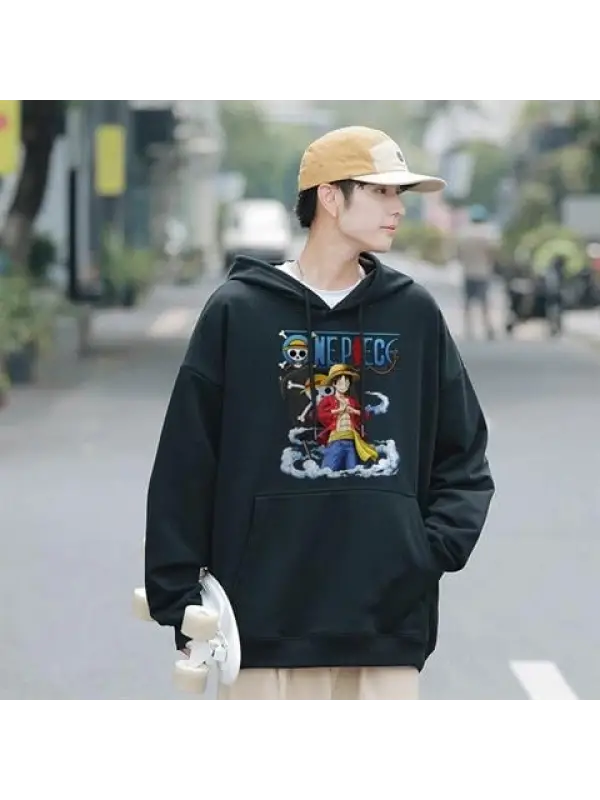 One Piece On The Clouds Baskılı Siyah Unisex Oversize Kapüşonlu Sweatshirt