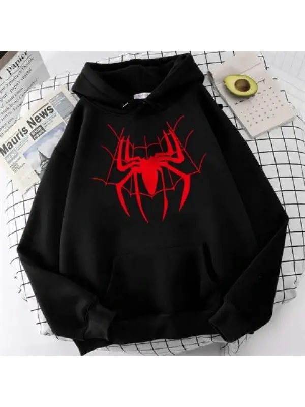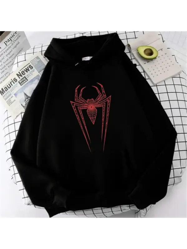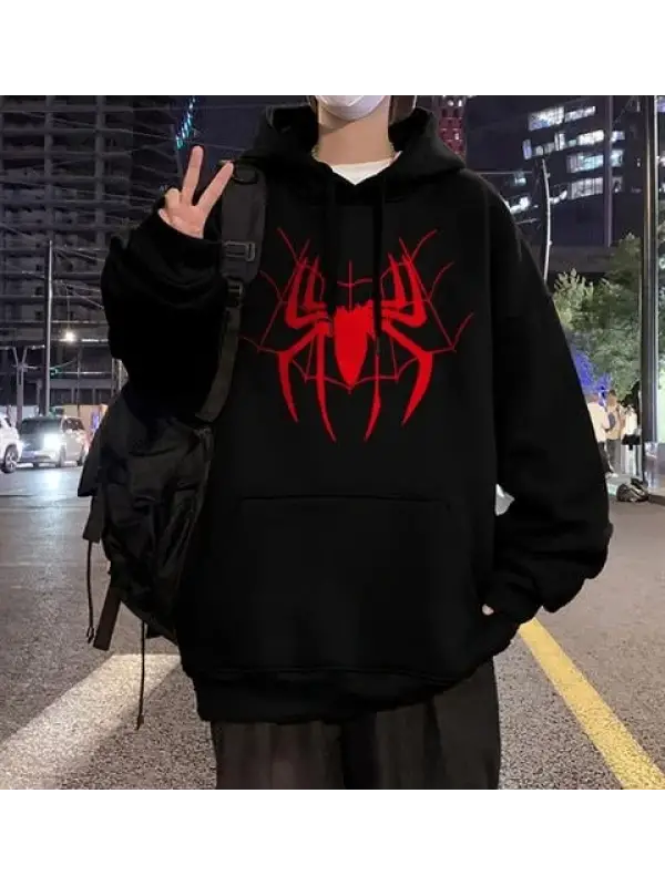 Red Spider Web Baskılı Siyah Unisex Oversize Kapüşonlu Sweatshirt