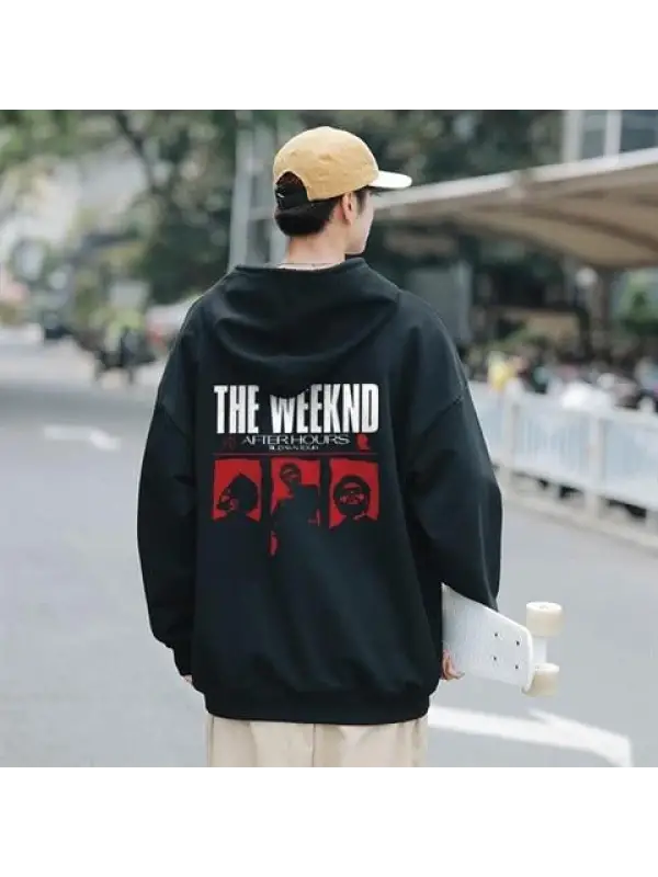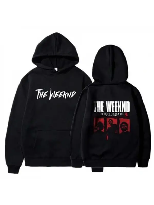 The Weeknd Ön-Arka Baskılı Siyah Unisex Oversize Kapüşonlu Sweatshirt