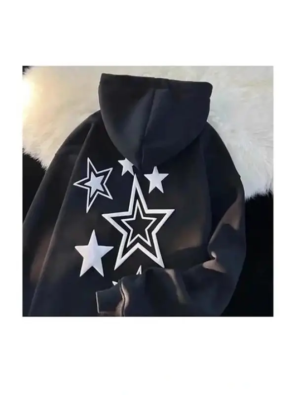 Y2k Harajuku Yıldızlar Blackoversize Kapüşonlu Tech Aesthetic Sweatshirt