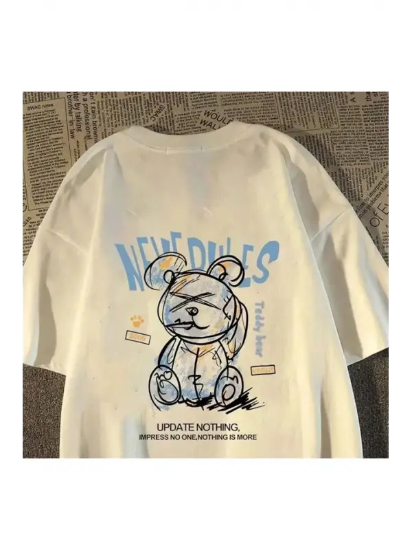 Beyaz Cartoon Bear Baskılı Oversize T-Shirt