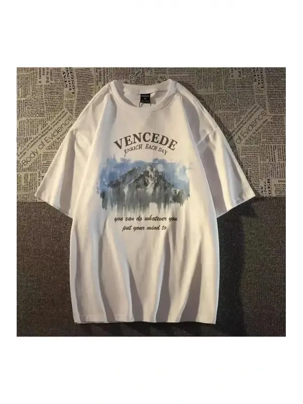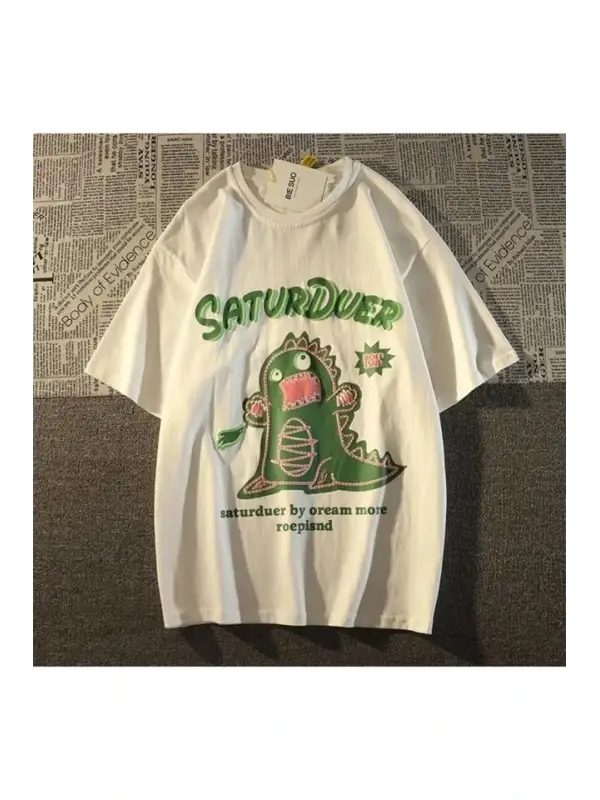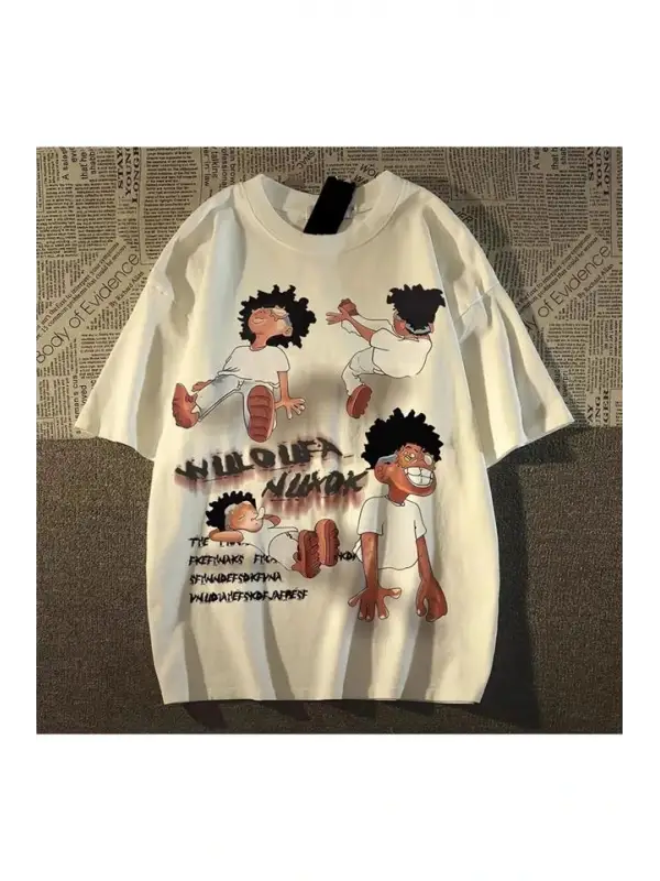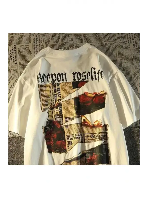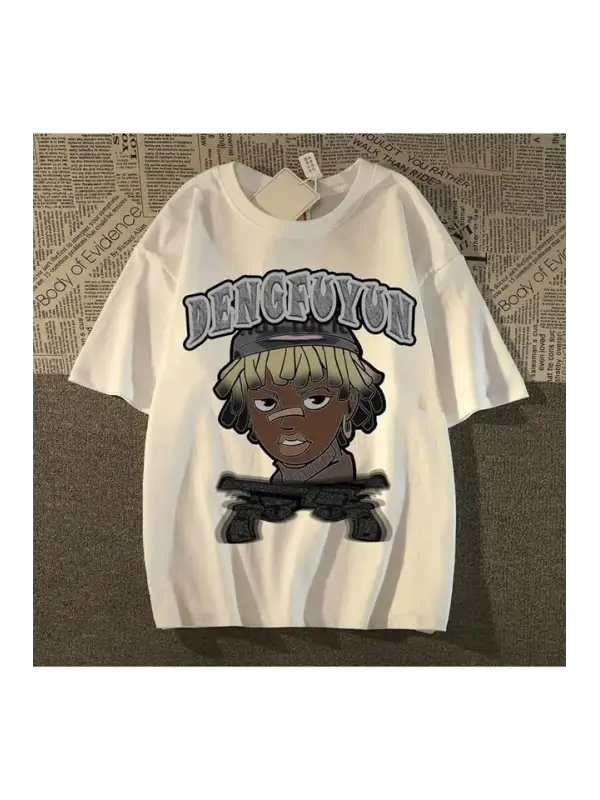 Beyaz Dengfuyun Hip Hop Baskılı Oversize T-Shirt