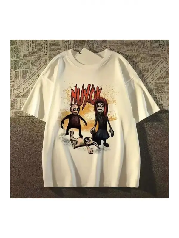 Beyaz Nuxok Baskılı Oversize T-Shirt