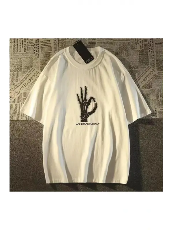 Beyaz Skeleton Hand Baskılı Oversize T-Shirt
