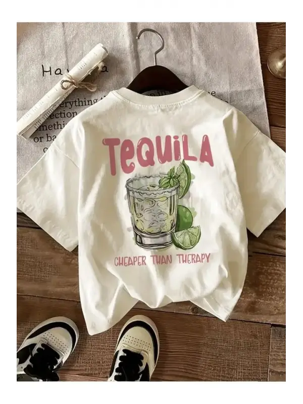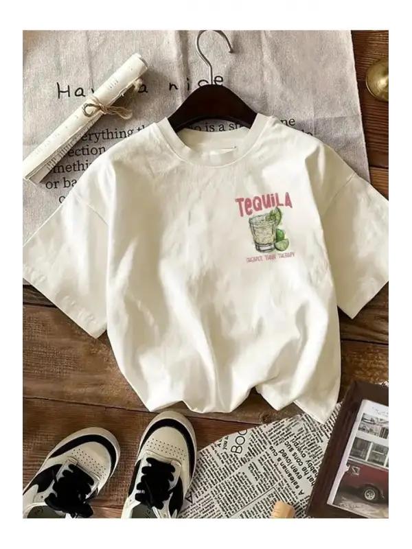 Beyaz Tequila Baskılı Oversize T-Shirt