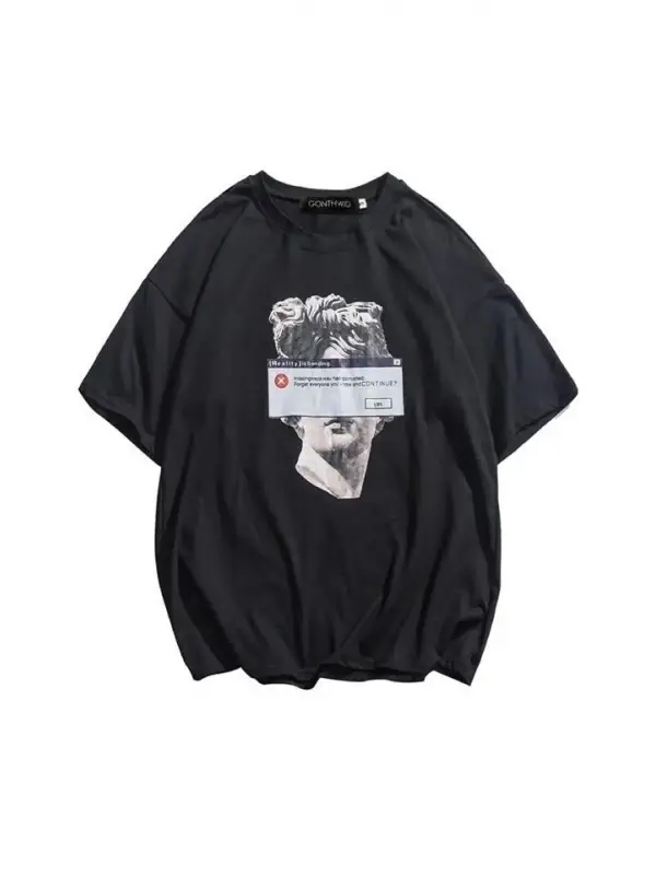 Siyah Michelangelo Heykeli Baskılı Oversize T-Shirt