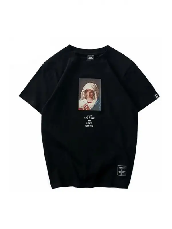Siyah Virgin Mary Baskılı Oversize T-Shirt