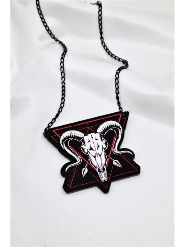 Gothic Halka Kuru Kafa Siyah Nikel Kolye