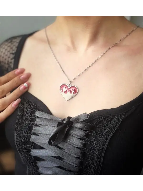 Zincirli Thrasher Alevli Kırmızı Kalp Kolye