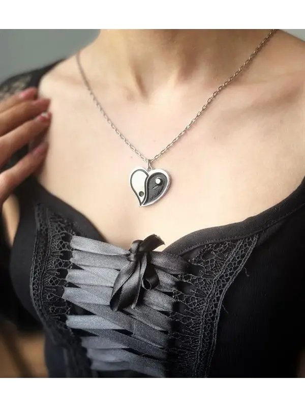 Zincirli Ying-Yang Kalp Kolye
