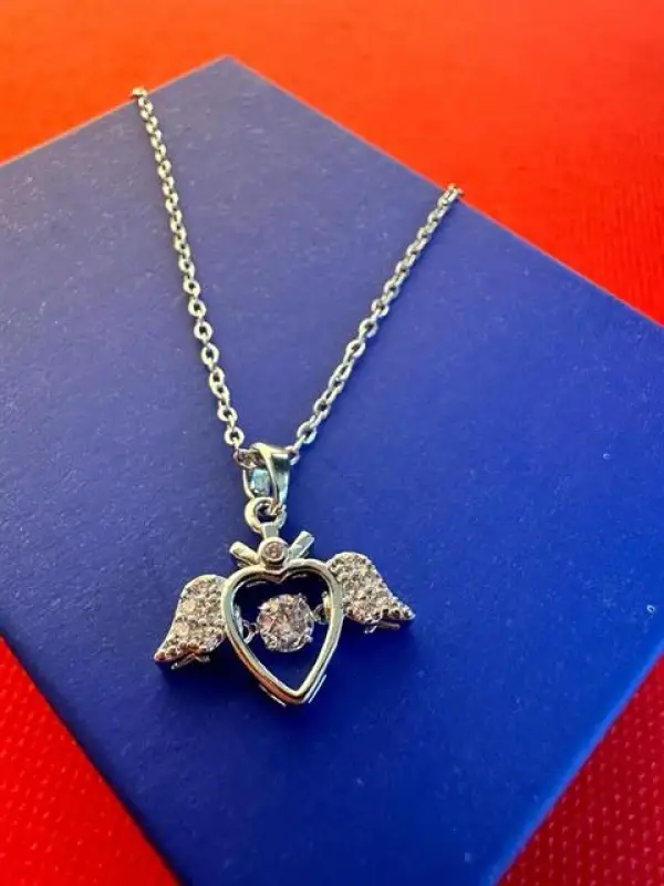 Çelik Gümüş Renk Melek Taşlı Kolye
