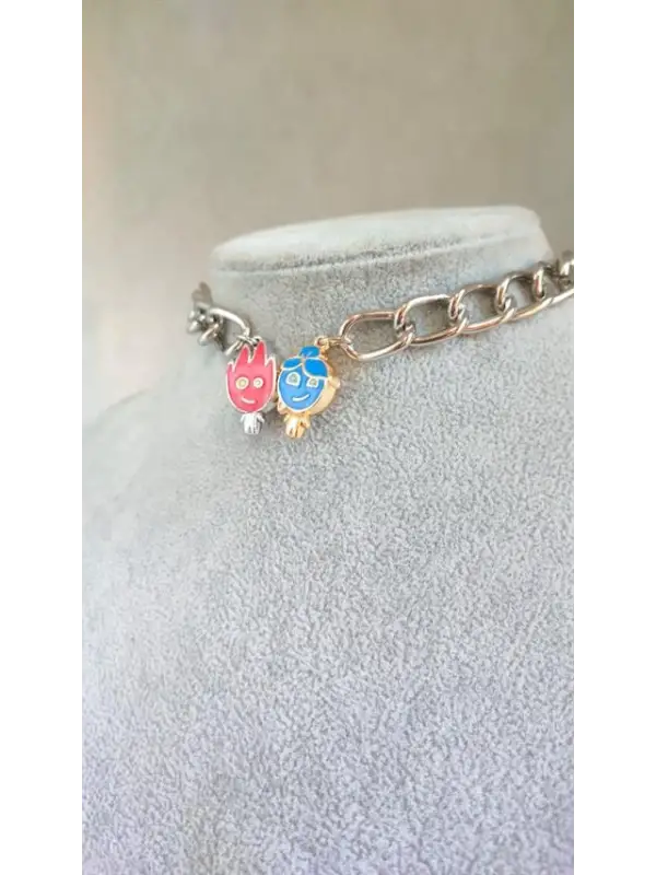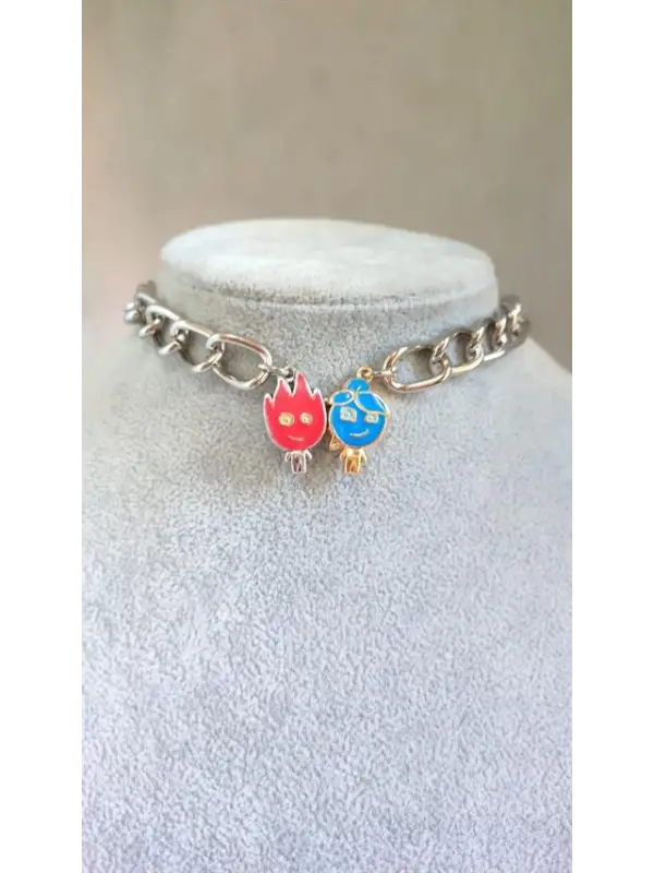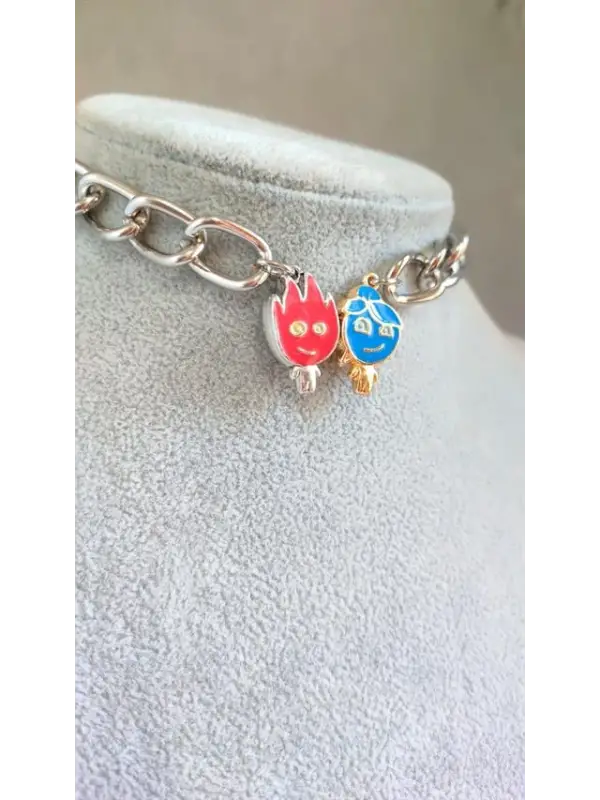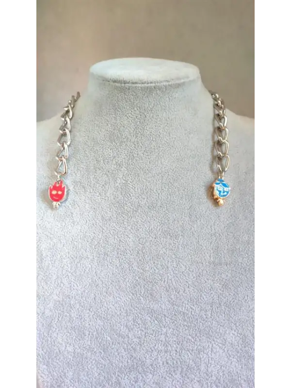 Ateş Ve Su Gümüş Renk Mıknatıslı Zincir Kolye