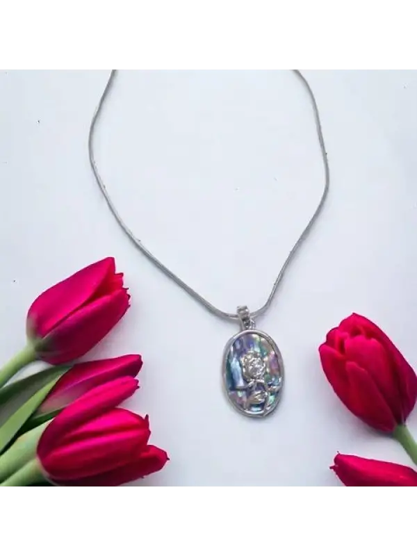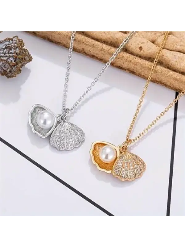 Çelik Gümüş Renk İstiridye İnci Kolye