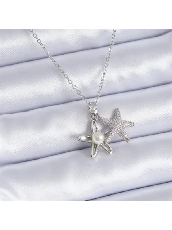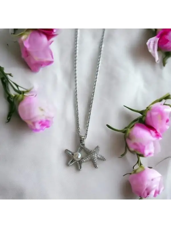 Çelik Kadın Gümüş Renkli İncili Deniz Yıldızı Kolye