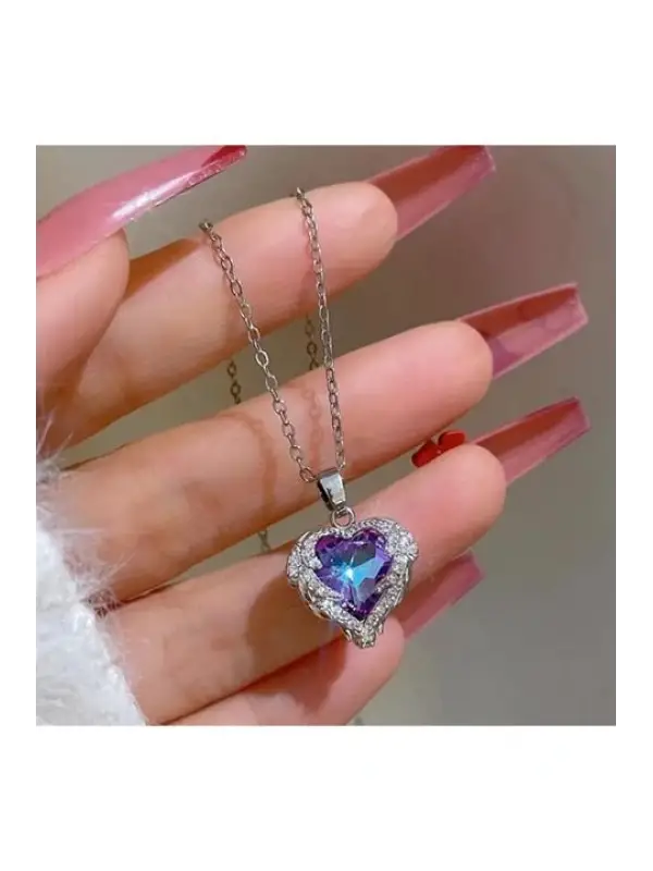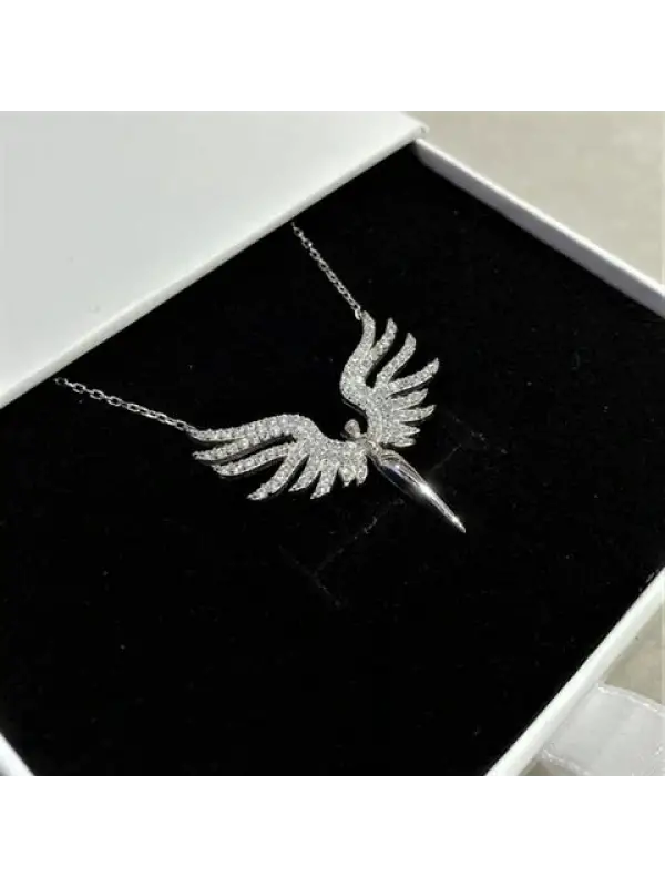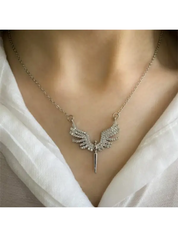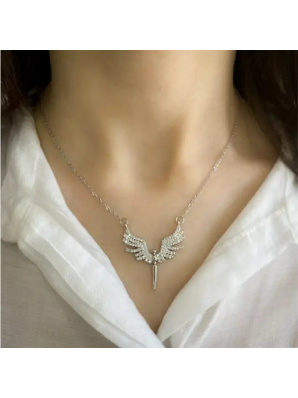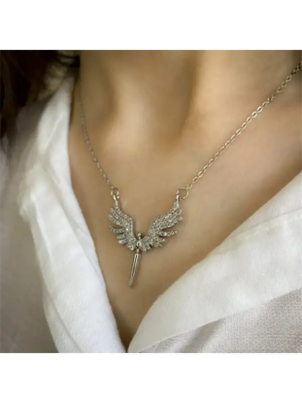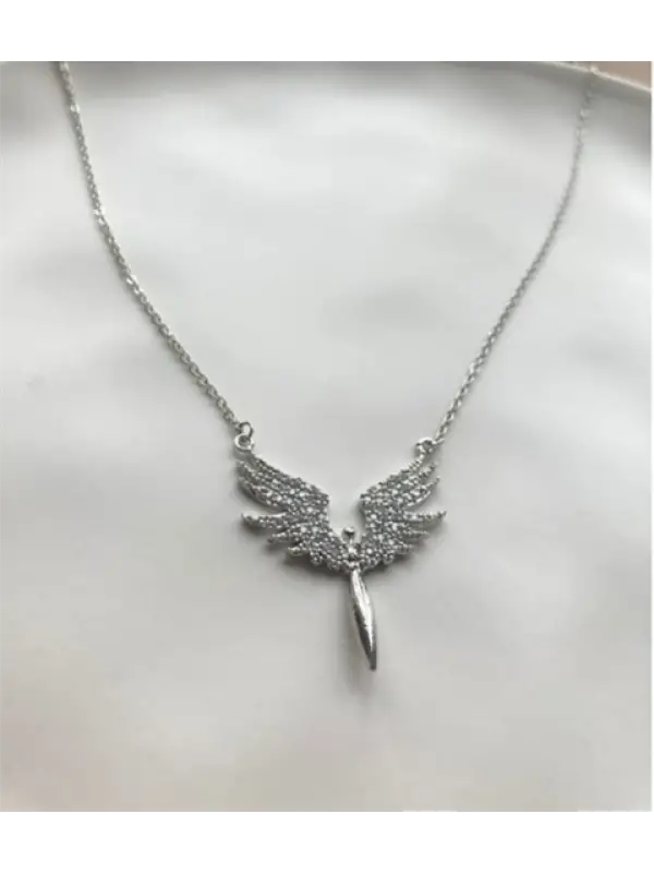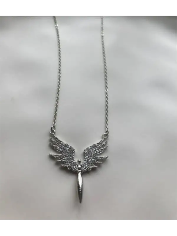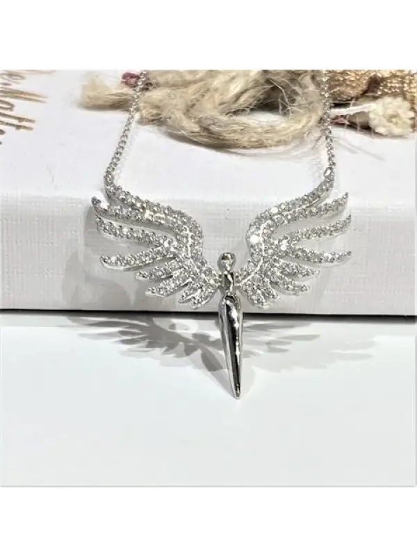 Çelik Zirkon Taşlı Angel Gümüş Renk Zincir Kolye