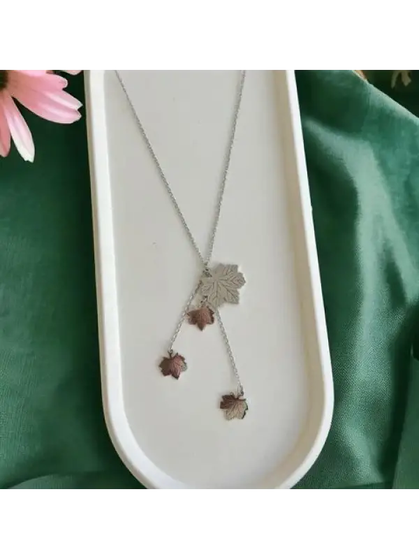 Paslanmaz Çelik Çınar Yaprağı Dört Yapraklı Kolye
