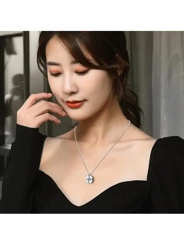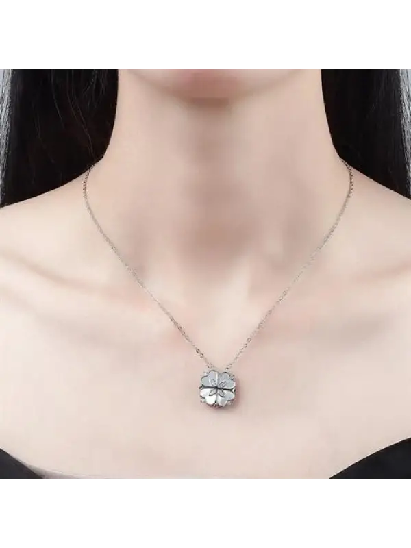 Paslanmaz Çelik Kalp Dört Yapraklı Yonca Manyetik Mıknatıslı Açılabilir Kolye