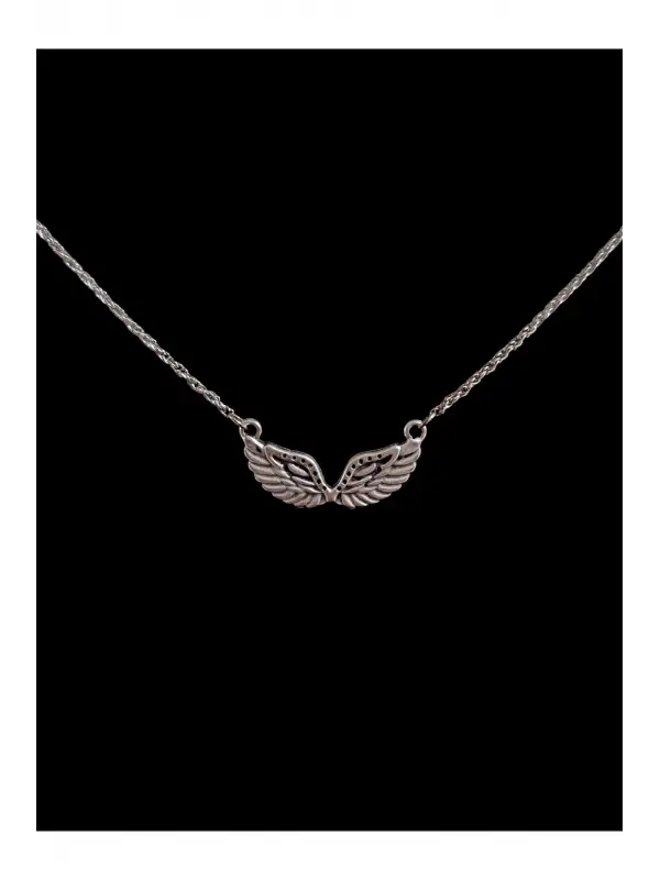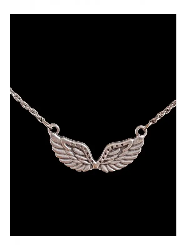 Antik Gümüş Kaplama Paslanmaz Çelik Unisex Melek Zincirli Kolye