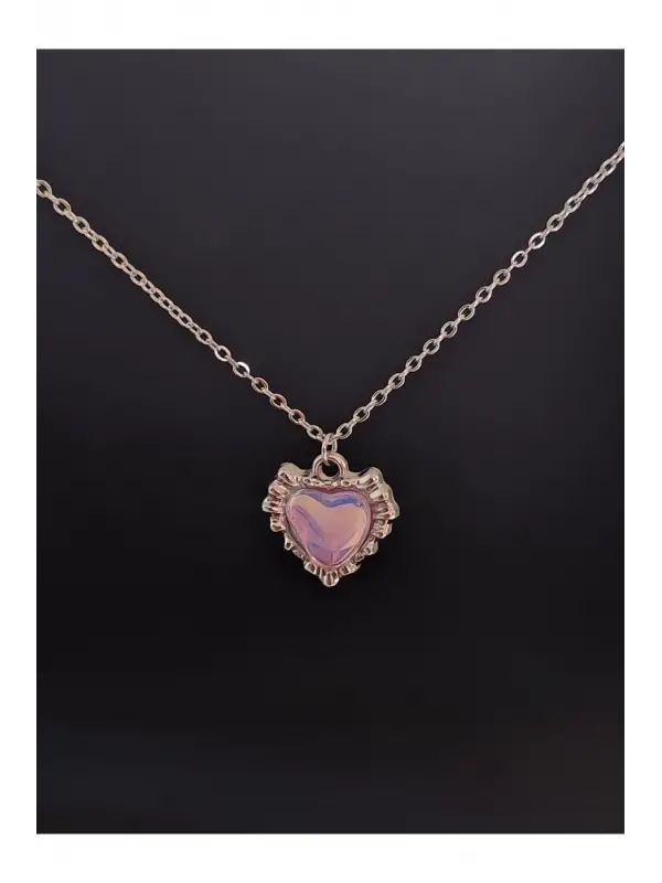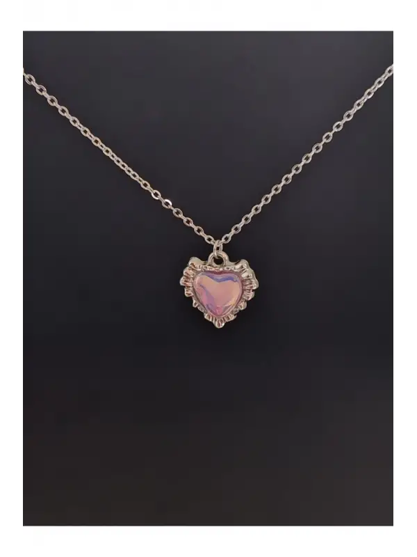 Antik Retro Antik El Yapımı Kalp Şeklinde Amestist İşlemeli Özel Zincirli Kolye