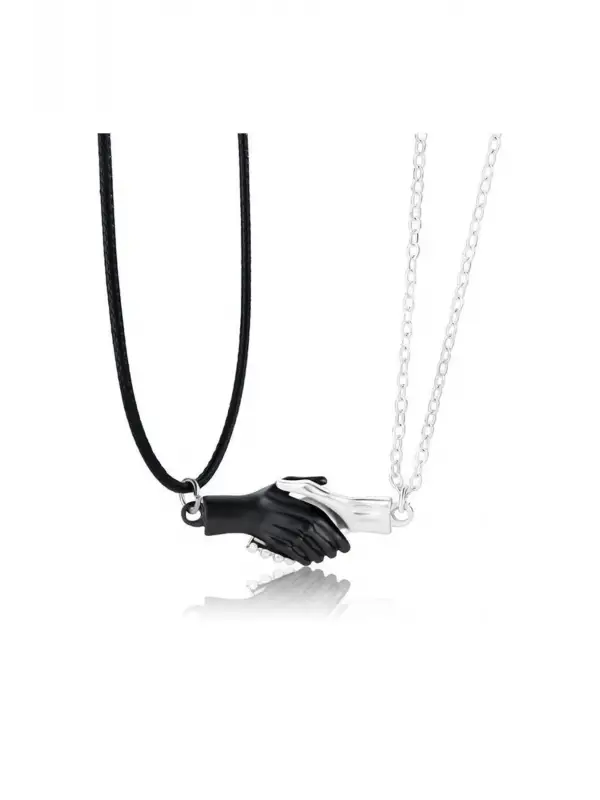 Antik Gümüş Kaplama El Ele Tutuşan 2'li Mıknatıslı Sevgili Kolyesi