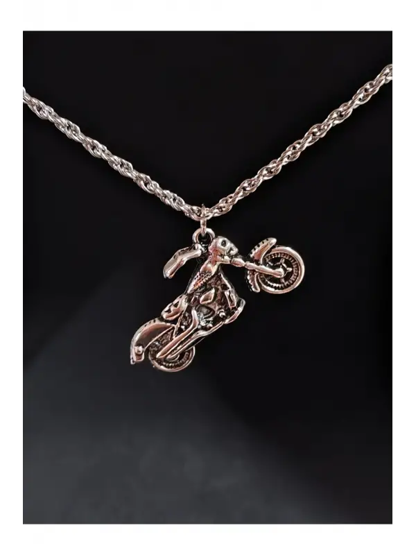 Antik Gümüş Kaplama Motorcu Moto Stil Sembol Unisex Zincirli Kolye