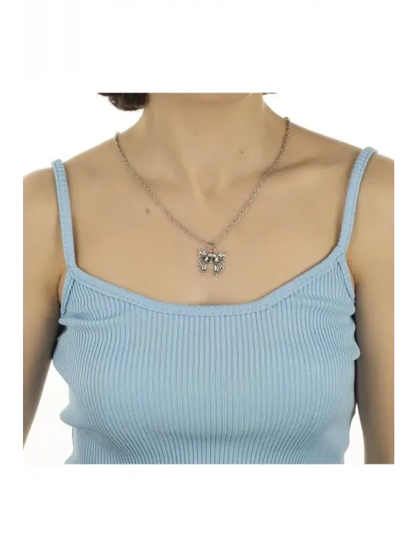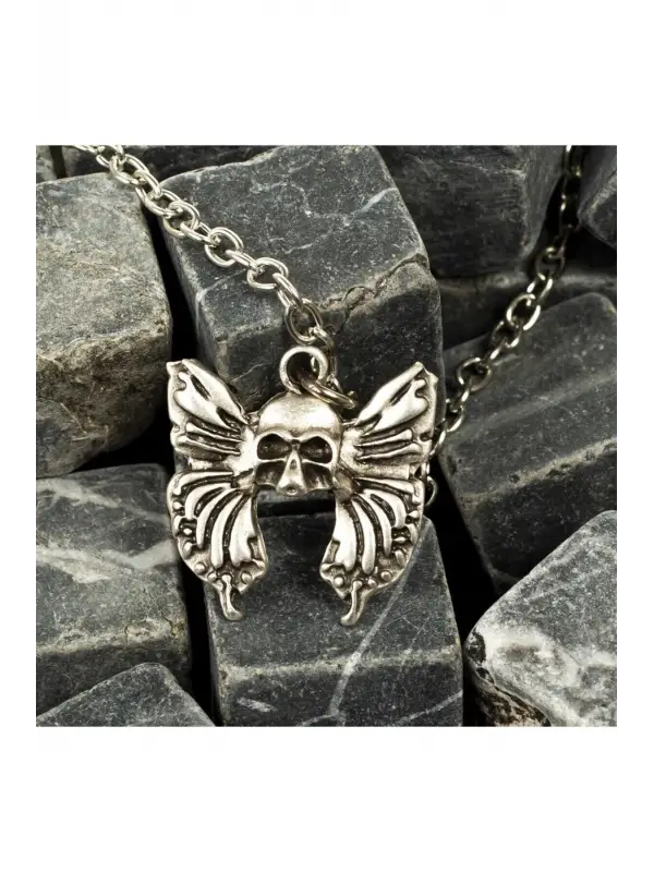 Antik Gümüş Kaplama Özel Hediyelik Küt Küt Skull and Butterfly Necklace Kolye