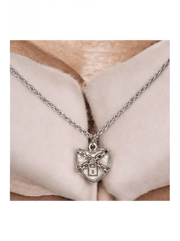Antik Gümüş Kaplama Vintage Sevgili Kilit Hediyelik Unisex Zincirli Kolye
