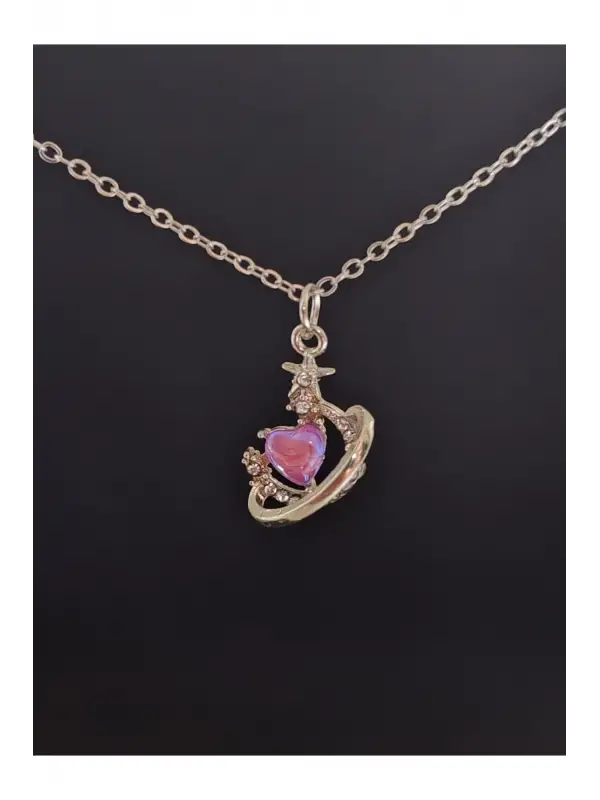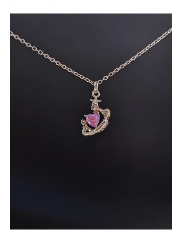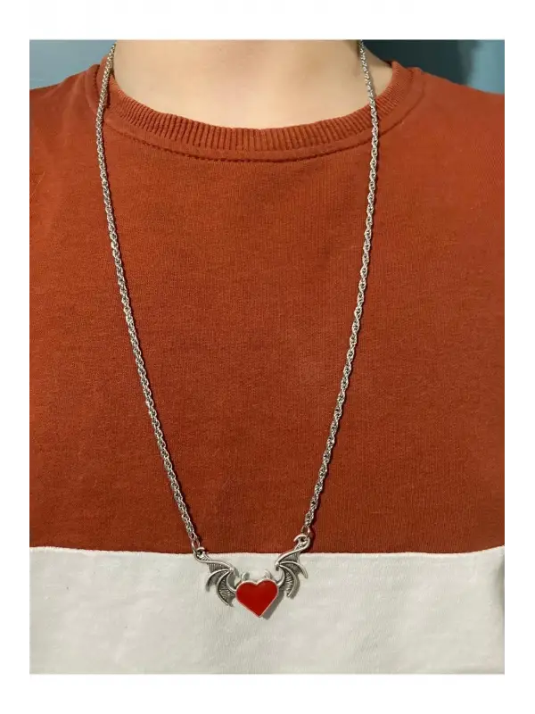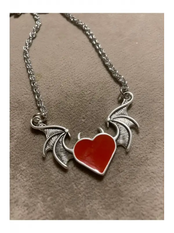 Kırmızı Kalpli Yarasa Kanatlı Zincirli Kolye
