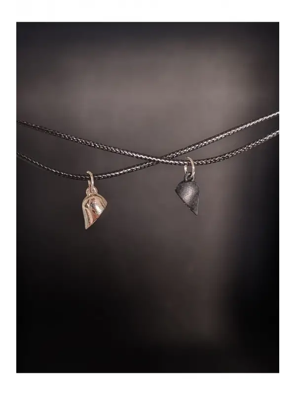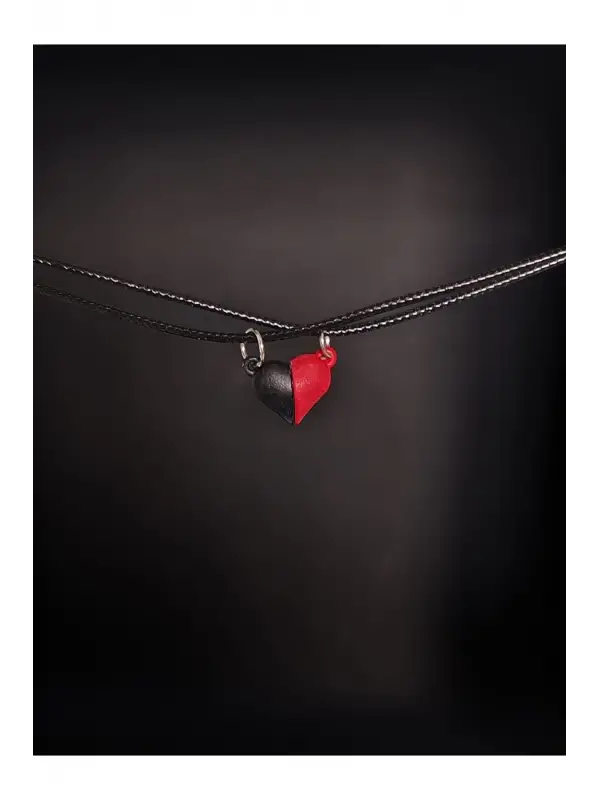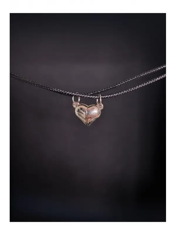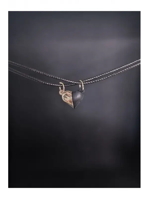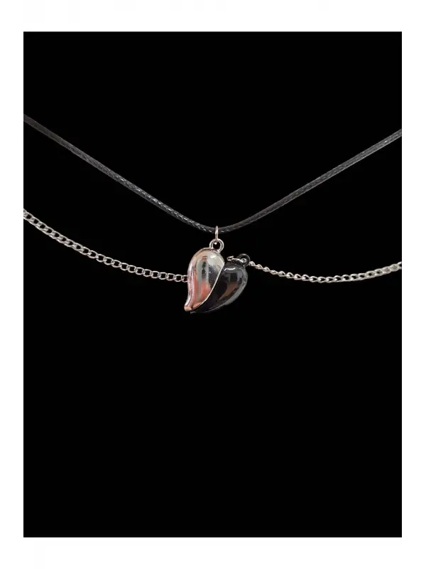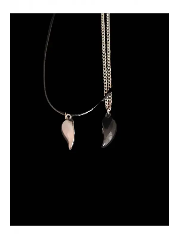Retro Antik El Yapımı Siyah Kalp Şeklinde 2'li Mıknatıslı Özel Görünüm Sevgili Hediyelik Kolye