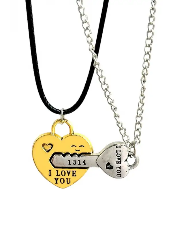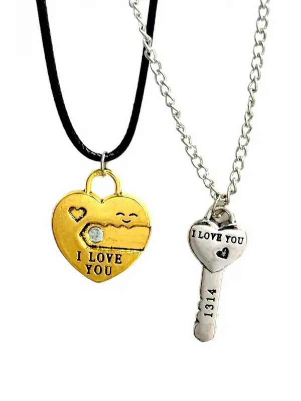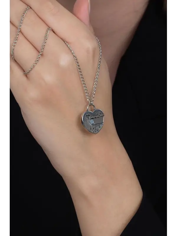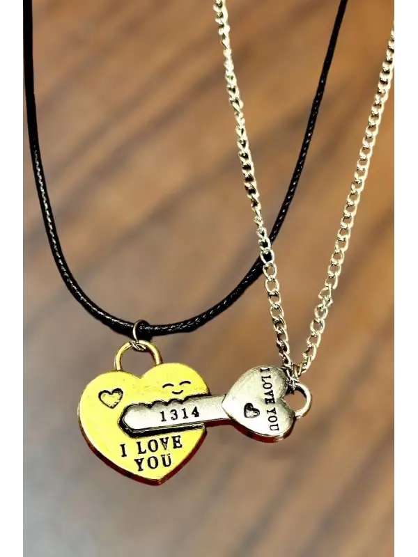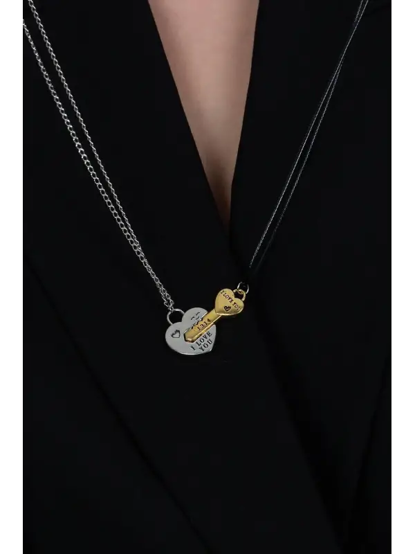 Mıknatıslı Kalp ve Anahtar I Love You Çift Kolyesi