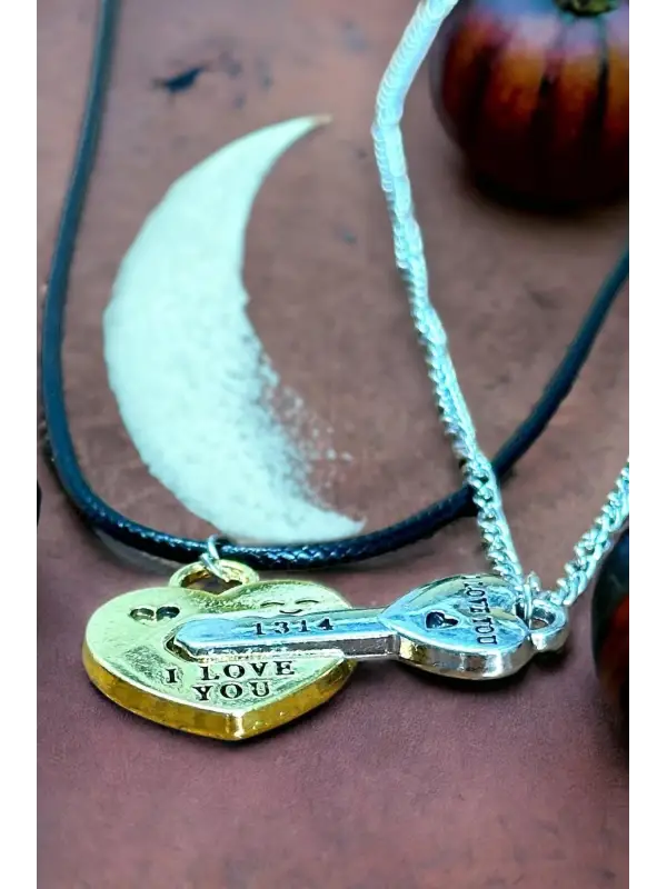 Retro Antik El Yapımı Kalp Şeklinde 2'li Mıknatıslı Özel Görünüm Sevgili Hediyelik Kolye
