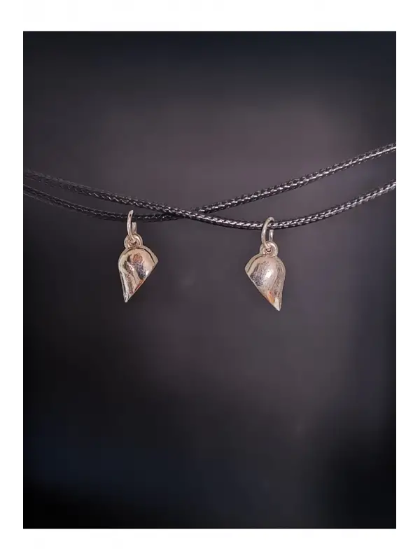 Retro Antik El Yapımı Gümüş Kalp Şeklinde 2'li Mıknatıslı Özel Görünüm Sevgili Hediyelik Kolye