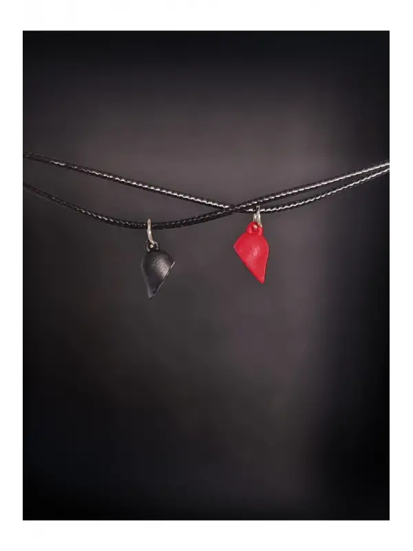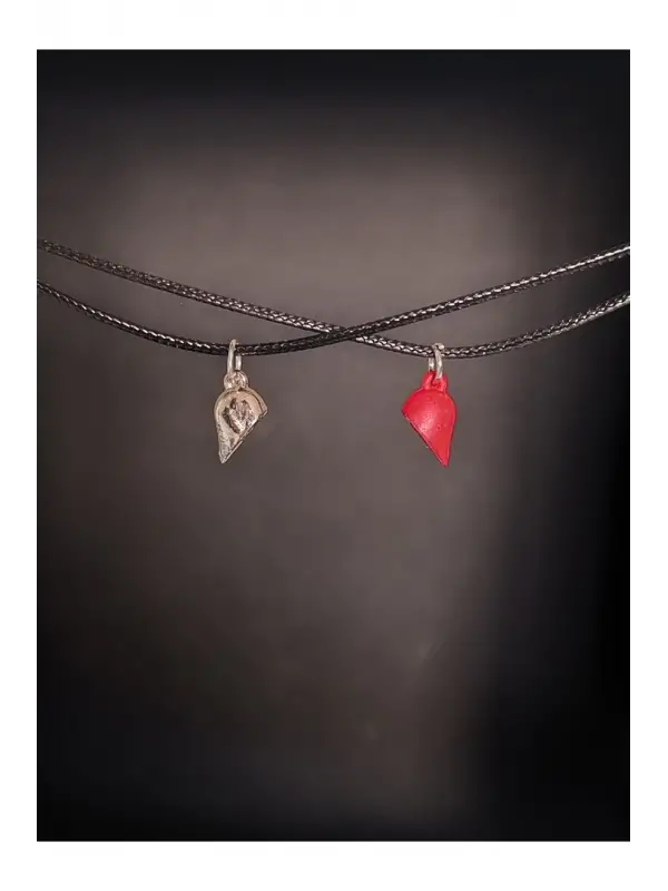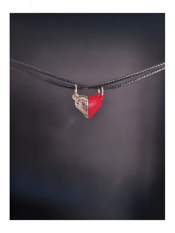Retro Antik El Yapımı Kırmızı Kalp Şeklinde 2'li Mıknatıslı Özel Görünüm Sevgili Hediyelik Kolye