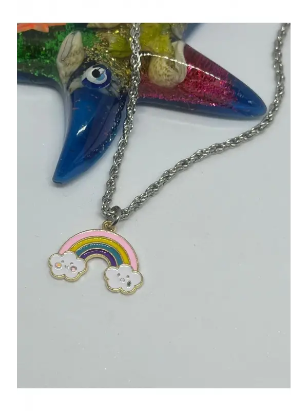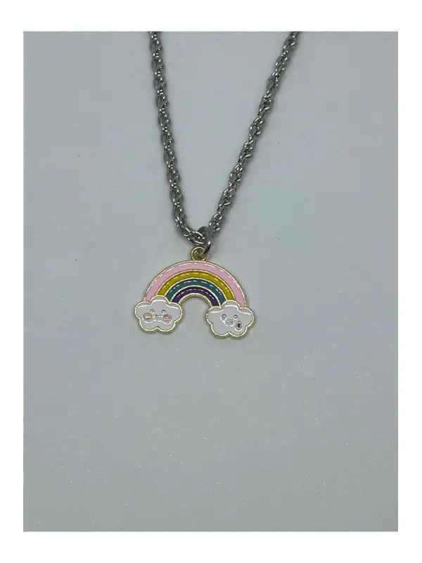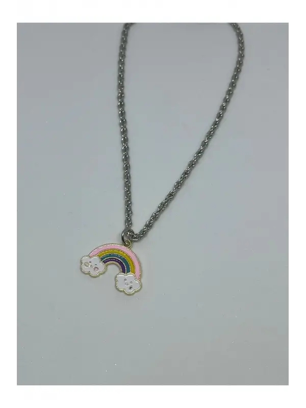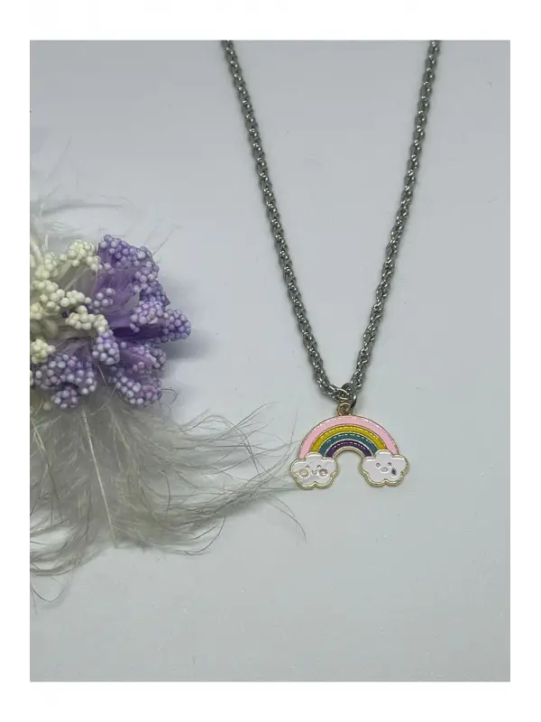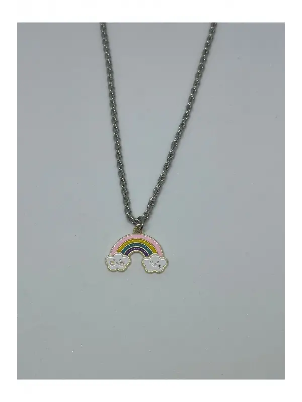 Unisex Gökkuşağı Doğa Temalı Gümüş Kaplama Paslanmaz Çelik Zincir Kolye