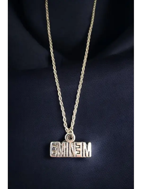 Antik Gümüş Kaplama El Yapımı Eminem Fan Unisex Zincirli Kolye