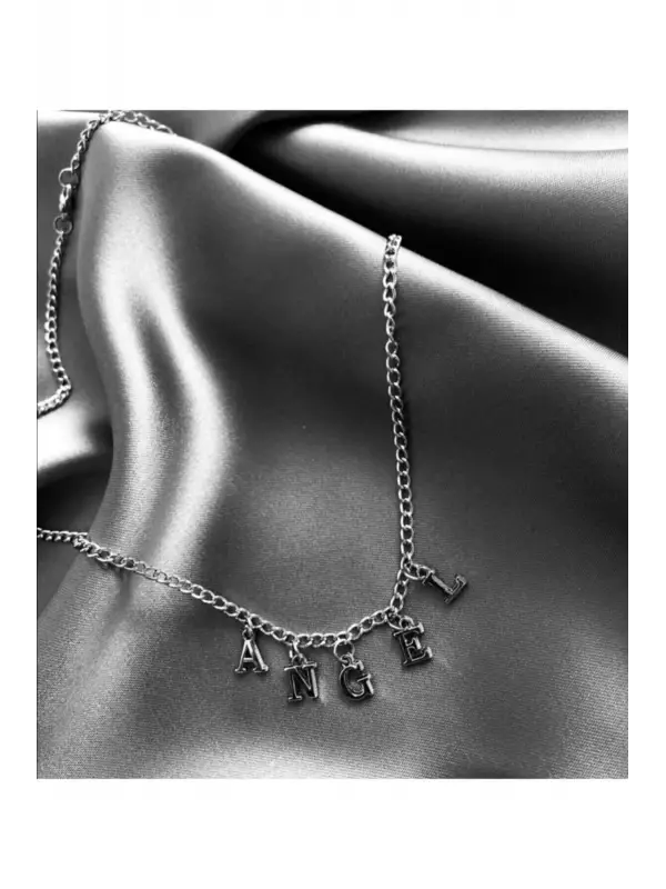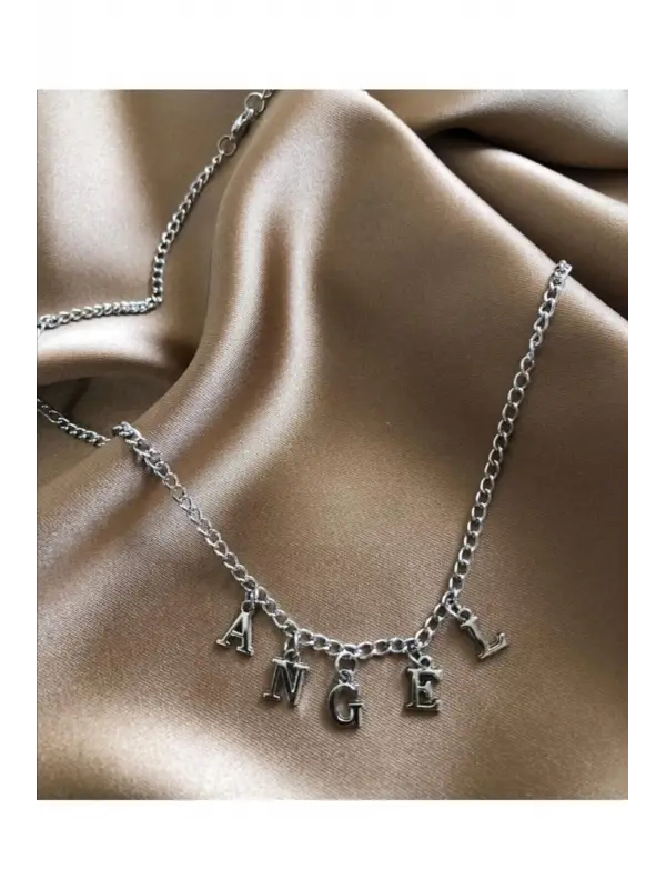 Antik Gümüş Kaplama Özel Harf Angel Yazılı Unisex Gotik Çelik Zincirli Kolye