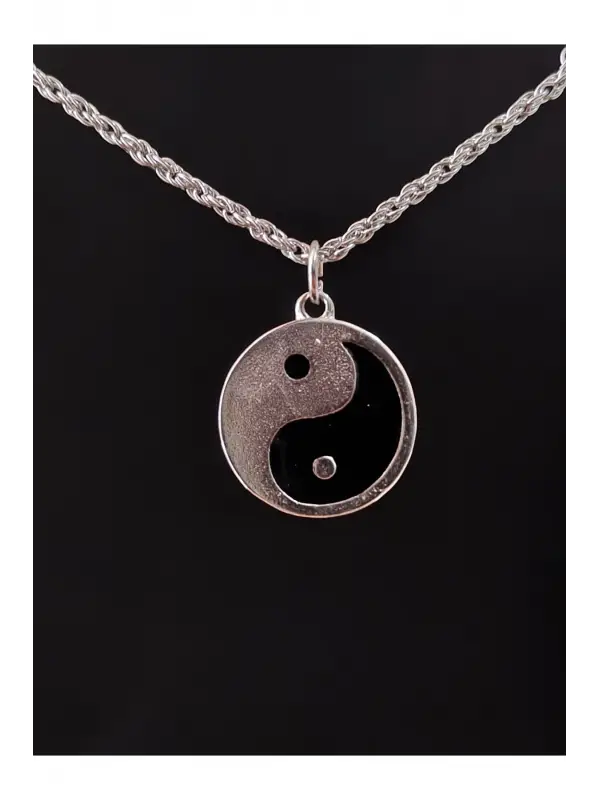 Antik Gümüş Kaplama Sembol Ying-Yang Zincirli Unisex Kolye