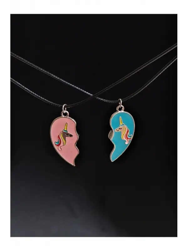 2 Adet Mıknatıslı Birleşen Sevimli Karakter Hediyelik Unisex Kolye
