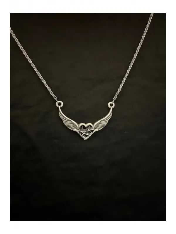 Antik Gotik Gümüş Kaplama Unisex Siyah Kalp Kanadı Anime Gothic Zincirli Kolye