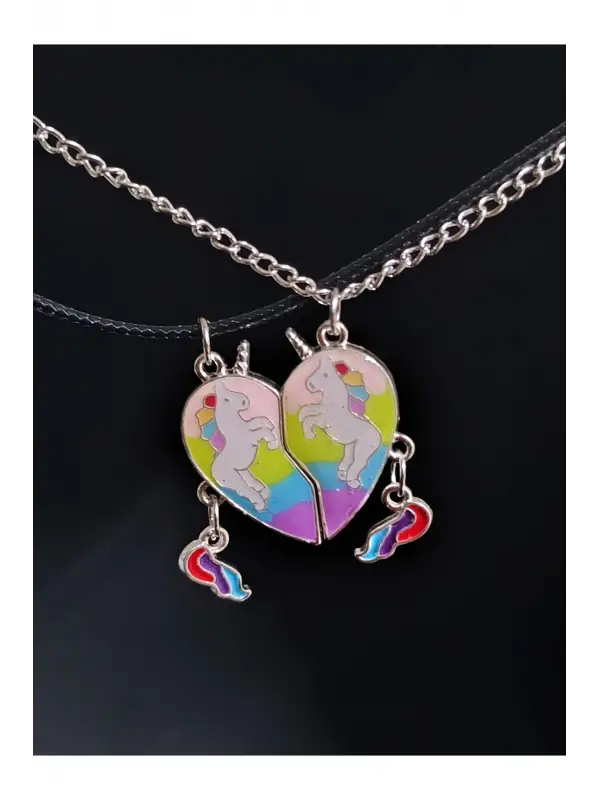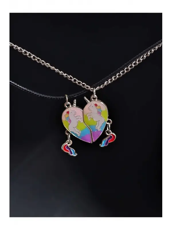 Antik Gümüş Kaplama Sevimli Horse 2 Adet Mıknatıslı Birleşen Unisex Hediyelik Kolye