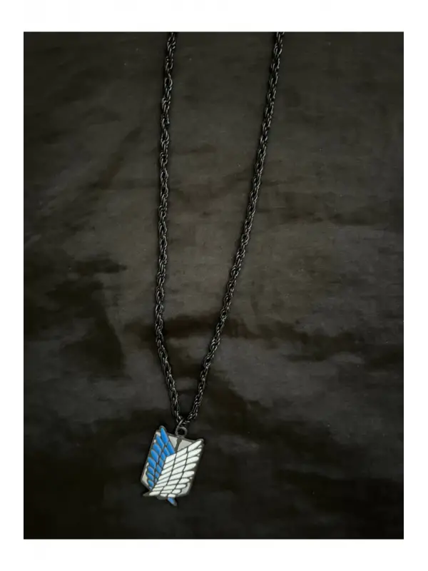 Antik Gümüş Kaplama Unisex Anime Attack On Titan Wings Siyah Zincirli Kolye