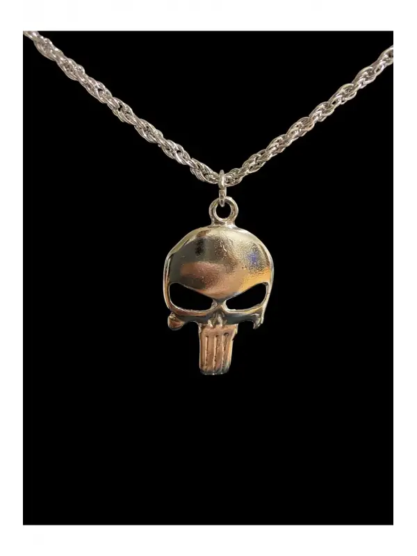 Antik Gümüş Kaplama Unisex Anime Gotik Punisher Zincirli Kolye