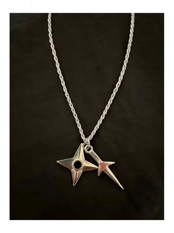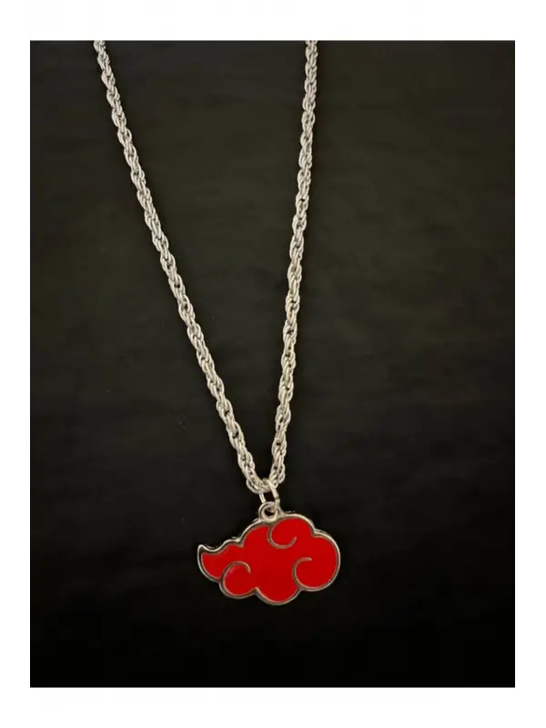 Antik Gümüş Kaplama Unisex Naruto Anime Mızrak Kırmızı Zincirli Kolye