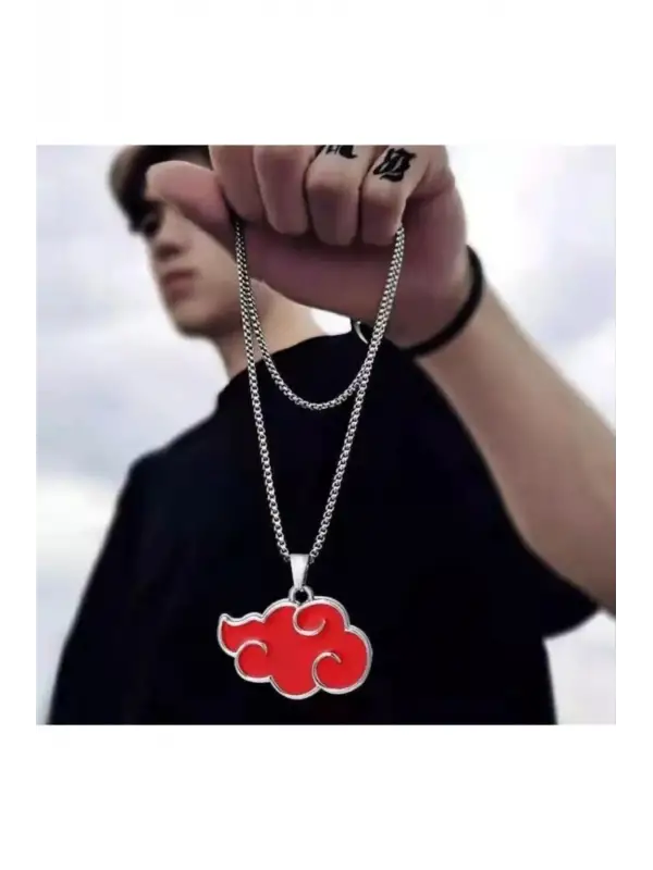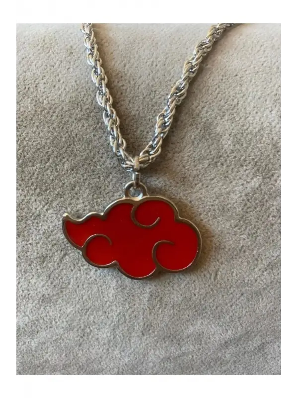 Antik Gümüş Kaplama Unisex Anime Naruto Akatsuki Sembol Zincirli Kolye