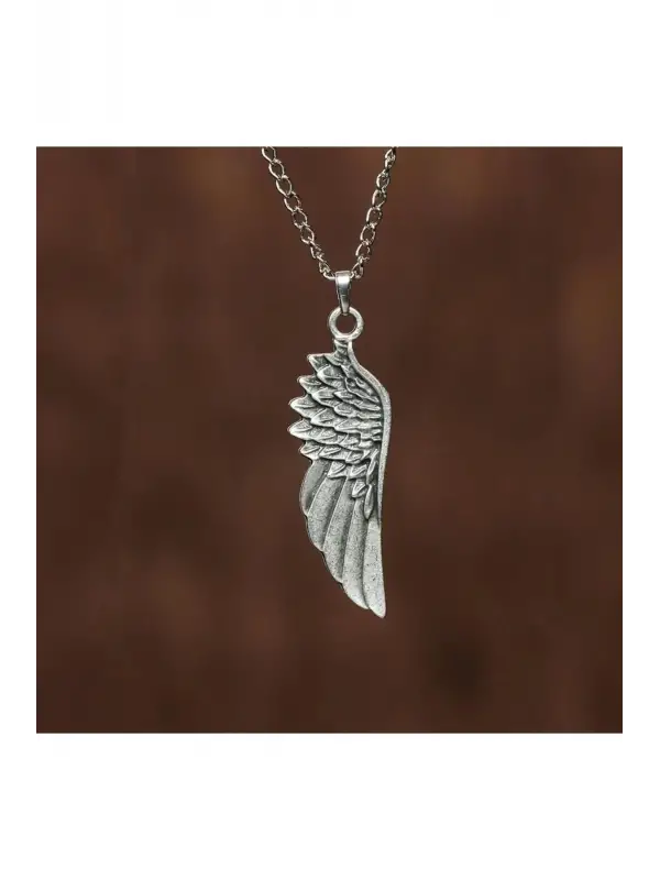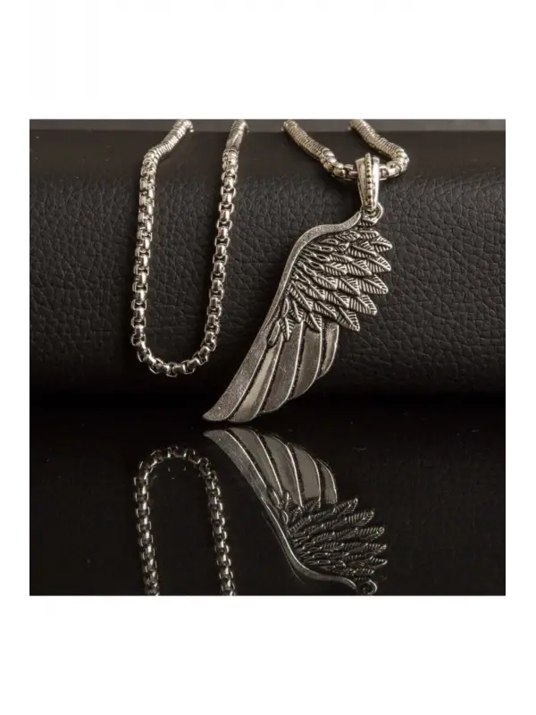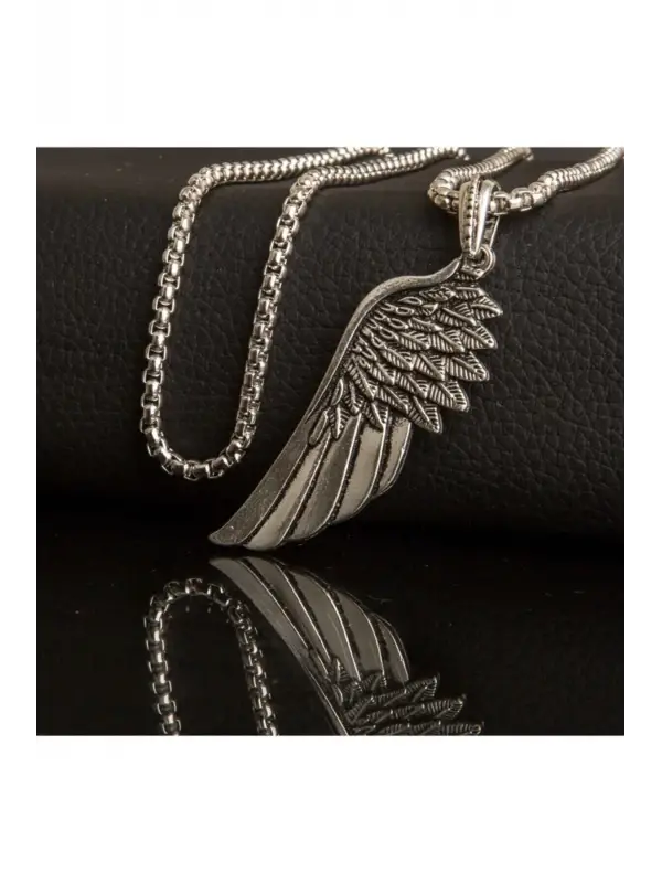 Antik Gümüş Kaplama Unisex Kartal Kanadı Figürlü Erkek Çelik Zincirli Kolye