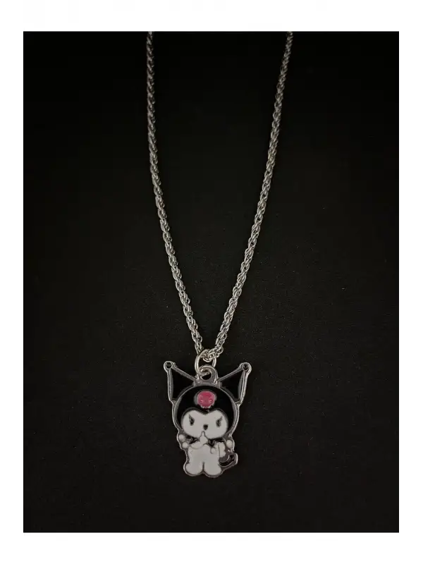 Gümüş Kaplama Çelik Unisex Hediyelik Anime Micky Desenli Melodi Zincirli Aksesuar Kolye