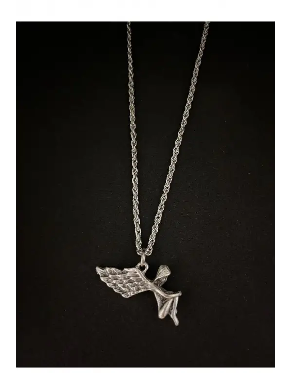 Gümüş Kaplama Paslanma Çelik Unisex Doğal Angel Melek Kız Aksesuar Zincirli Kolye