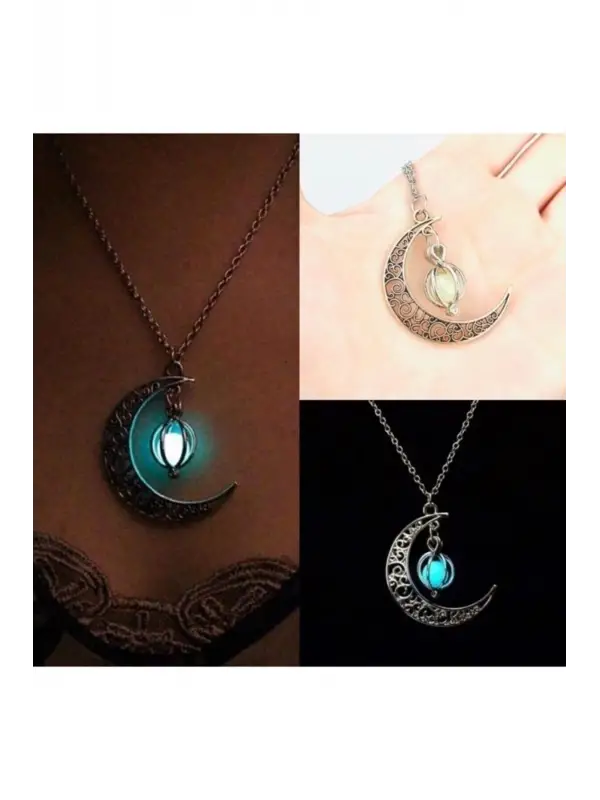 Karanlıkta Parlayan Fosforlu Gri Ay Moon Hediyelik Kolye