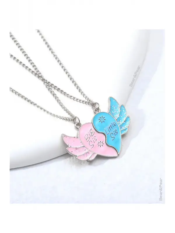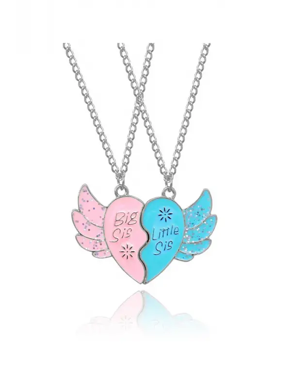 Sister Mıknatıslı Abla Kardeş Kolyesi Simli Kalpli Kardeşlik Kolye